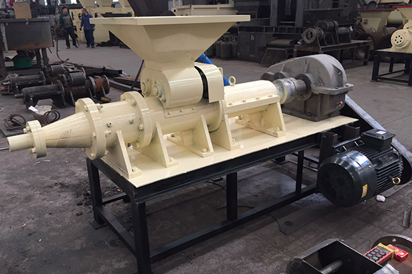 煤棒機、煤棒擠出機是把粉末狀散煤加工成不同形狀實心或空心條棒狀的設備。其工作原理是:電動機經三角皮帶把動力傳給變速器,變速器輸出軸通過浮動聯軸器把動力傳給推進軸,推進軸上的推進器推動煤料經成型模頭推出,便生產出理想的高壓煤棒。